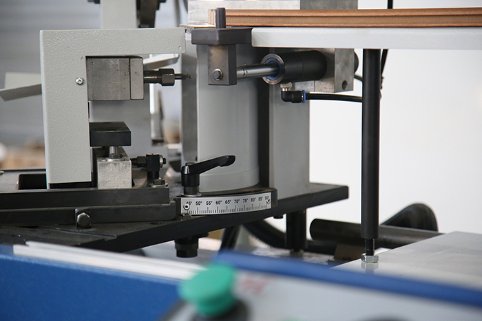 WOOD EXPERT 300 Otomatik çift taraflı 45-90 derece aralığında ahşap köşe kesim ve kırlangıç zıvana açma makinası.